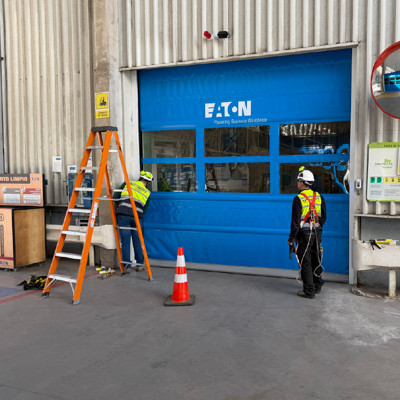 En este proyecto se instalaron 7 puertas rápidas industriales con la particularidad de que fueron hechas en un solo paño. Por ciertas irregularidades del suelo tuvimos que adosar un sócalo que se adaptó al piso. Estas puertas fueron diseñadas para división de sectores.